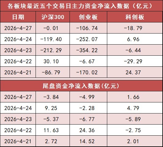 沪深300今日主力资金净流出0.01亿元,创业板主力资金净流出106.74亿元。