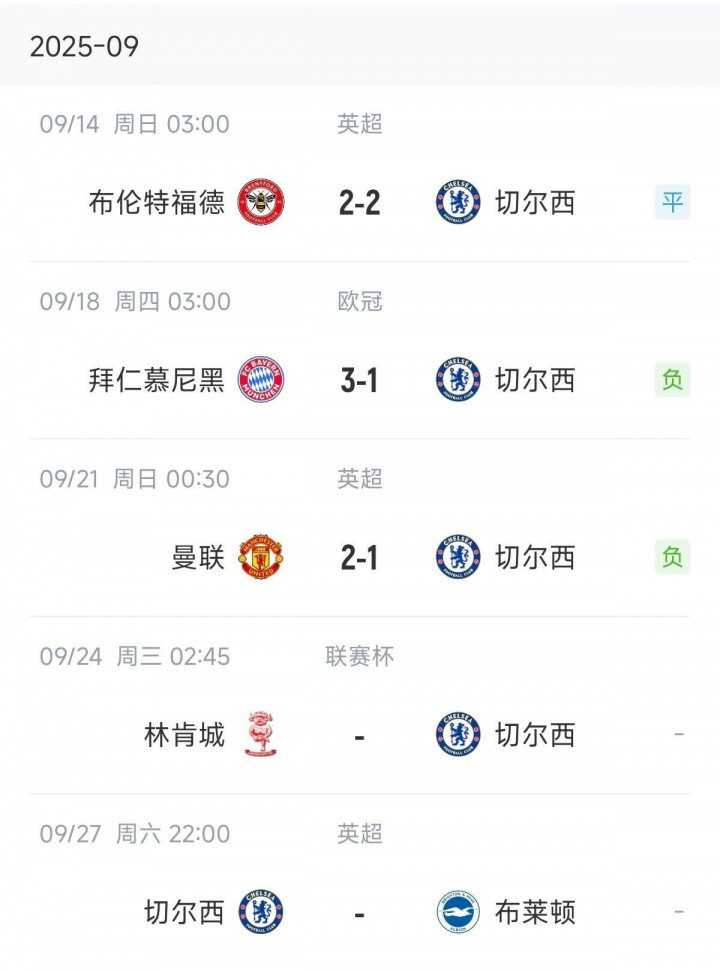 直播吧09月21日讯 英超第5轮,切尔西1-2不敌曼联,9月4连客暂时1胜难求2负1平。