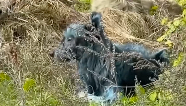 视频显示,这些狗的毛发呈现均匀的亮蓝色,皮肤无明显异常,且行为活跃健康。