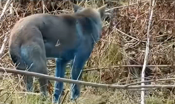 切尔诺贝利隔离区内存在大量废弃工业设施,可能残留油漆、溶剂或重金属(如硫酸铜)等,此前有类似的先例:2021年俄罗斯捷尔任斯克市曾因化工厂废弃物泄漏,导致7只流浪狗被染成蓝色。